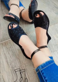 پاپوش زنانه جلو باز بندی کفی چرم سایز۳۶.۳۷.۳۸