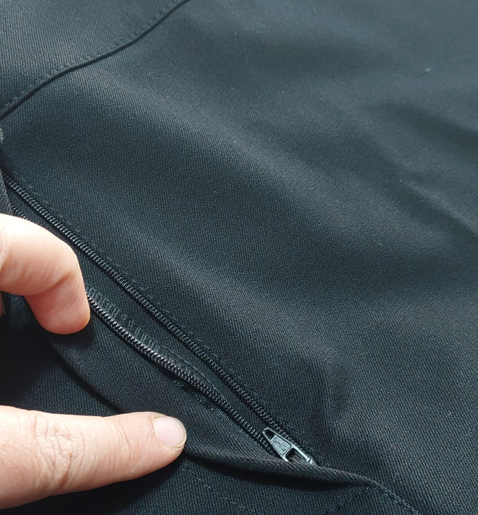 کمری دار و زیپ و جیب نما و دم پا راسته و چاک دار