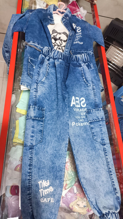 توجه داشته باشید که فقط سایز ۴ موجوده و جین اصلیه و کاغذی نیست. رنگ شلوار یه کم روشن تر از کت میباشد.یه کم رنگ لباس کمرنگ تر از عکس میباشد به خاطر همین تخفیف زیاد خورده.