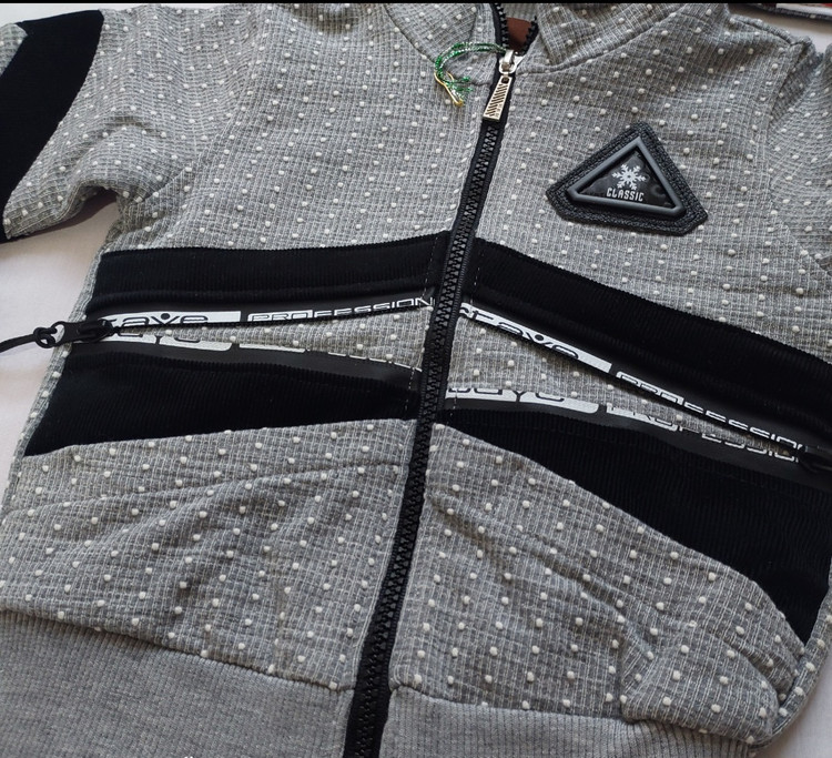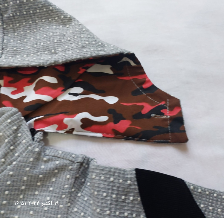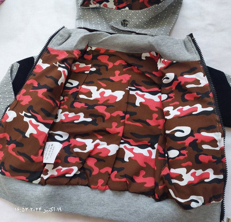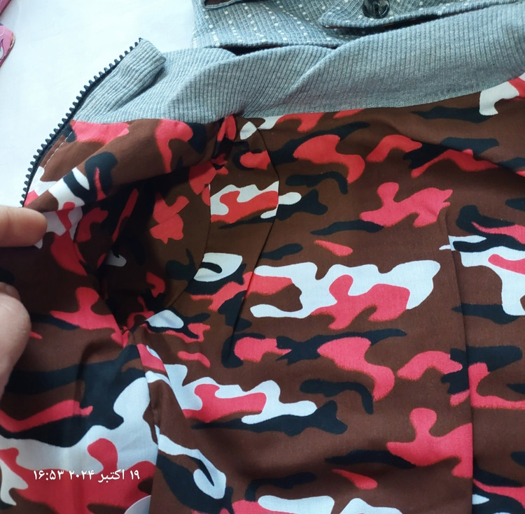 جلوی روی لباس دوتا زیپ کار شده که وقتی باز میشه دست داخلش میره و به عنوان جیبه و وقتی زیپ ها رو ببندیم قد لباس رو میتونیم کوتاه تر کنیم و تنظیم کنیم با قد پسرگلمون
