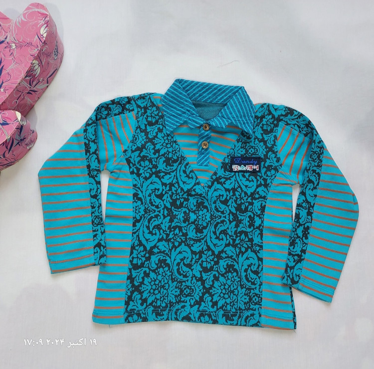 بلوز بچگانه دو دکمه یقه دار سایز ۳۵ و ۴۵ جنس بسیار عالی و درجه یک و ترکیب شده با دورس سایز ۳۵:قدلباس۳۴.دورسینه۵۶.سرشانه۶.آستین۲۶ سایز۴۵.قد لباس۴۱.دورسینه۶۸.سرشانه۹.آستین۳۵
