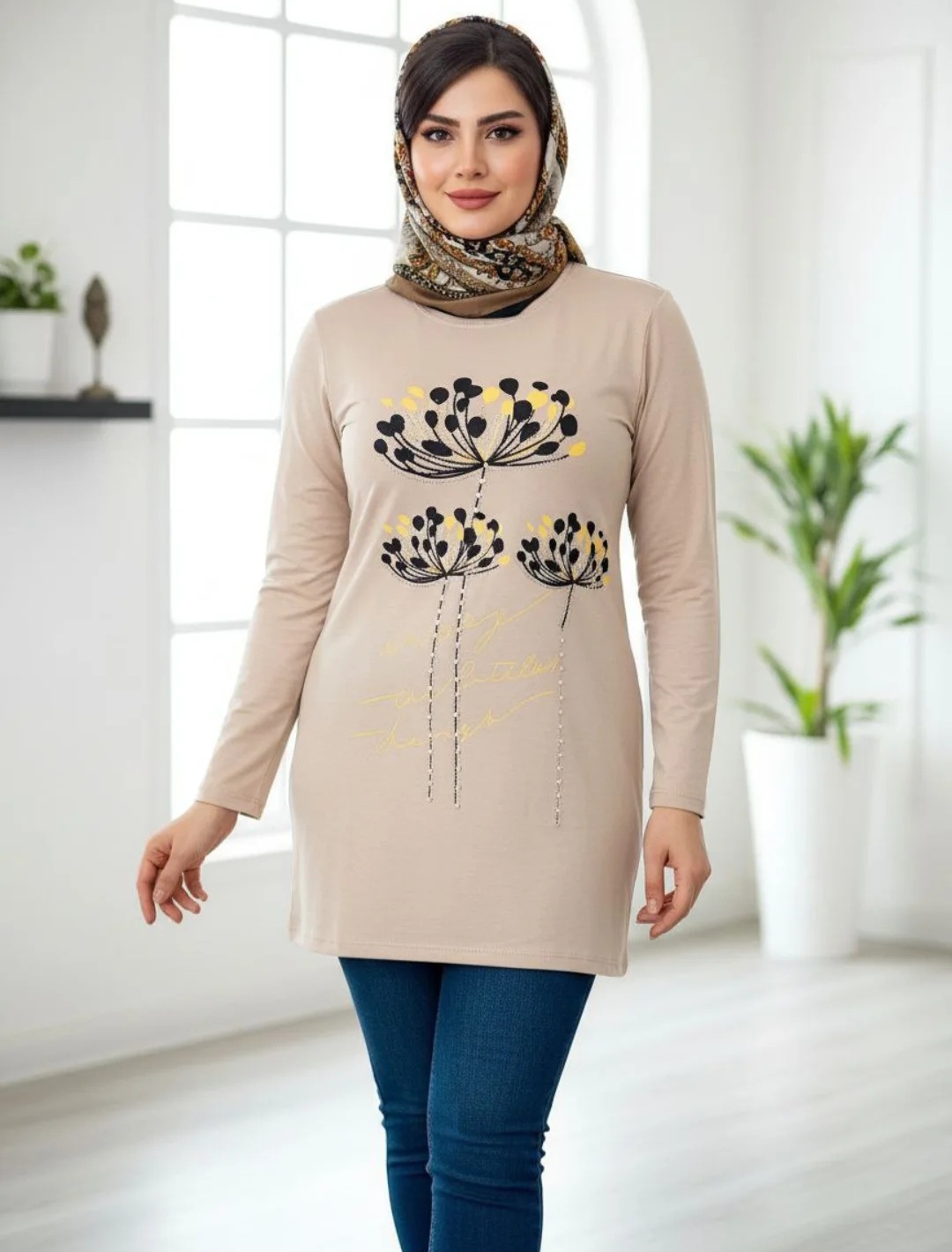 تونیک زنانه بلند مرواریدی